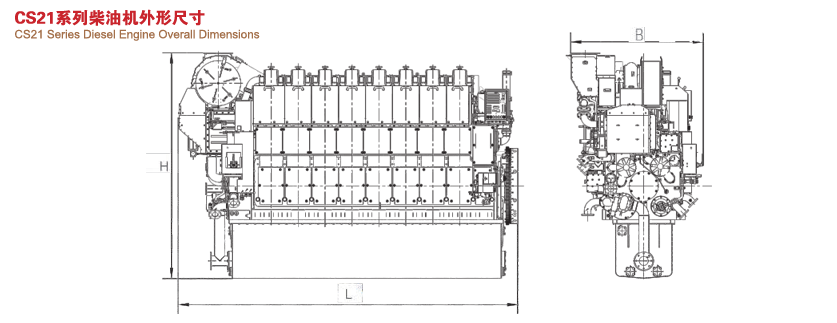 CS21 diesel engine adopts block-based design, and the appearance is attractive and easy for maintenance, with the basic characters of modern engines. The cylinder can be integral or separated disassembly. The independent front case body has the integration of lube oil pump, water pump, thermostat valve, lube oil cooler etc, and part of cooling water pipeline and lubricating oil passage. The lubricating system almost achieves no-pipe. The turbocharger can be laid both at the frond end and back end of the engine, and the standard configuration is wet-type oil sump, but has preset the connection for dry-type oil sump. All the pipelines adopt standard flange and pipe joint. The key components adopt imported parts, and the overhaul period can reach to 30000 hours.