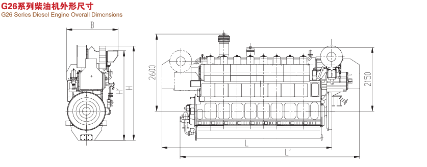The series G26 diesel engine is a self - developed new product, and it is developed successfully based on much calculation for a long time, test data and abundant manufacture experience, also absorbed the advanced technique from international brand engines, can use 380cSt/50P HFO, the crankshaft adopts full balanced construction so the whole engine vibration is small, and the engine can be output of 100% rated power from free end. The engine operation is reliability with high economy, and meets environmental regulations. Making clients satisfied is our untiring pursuit.