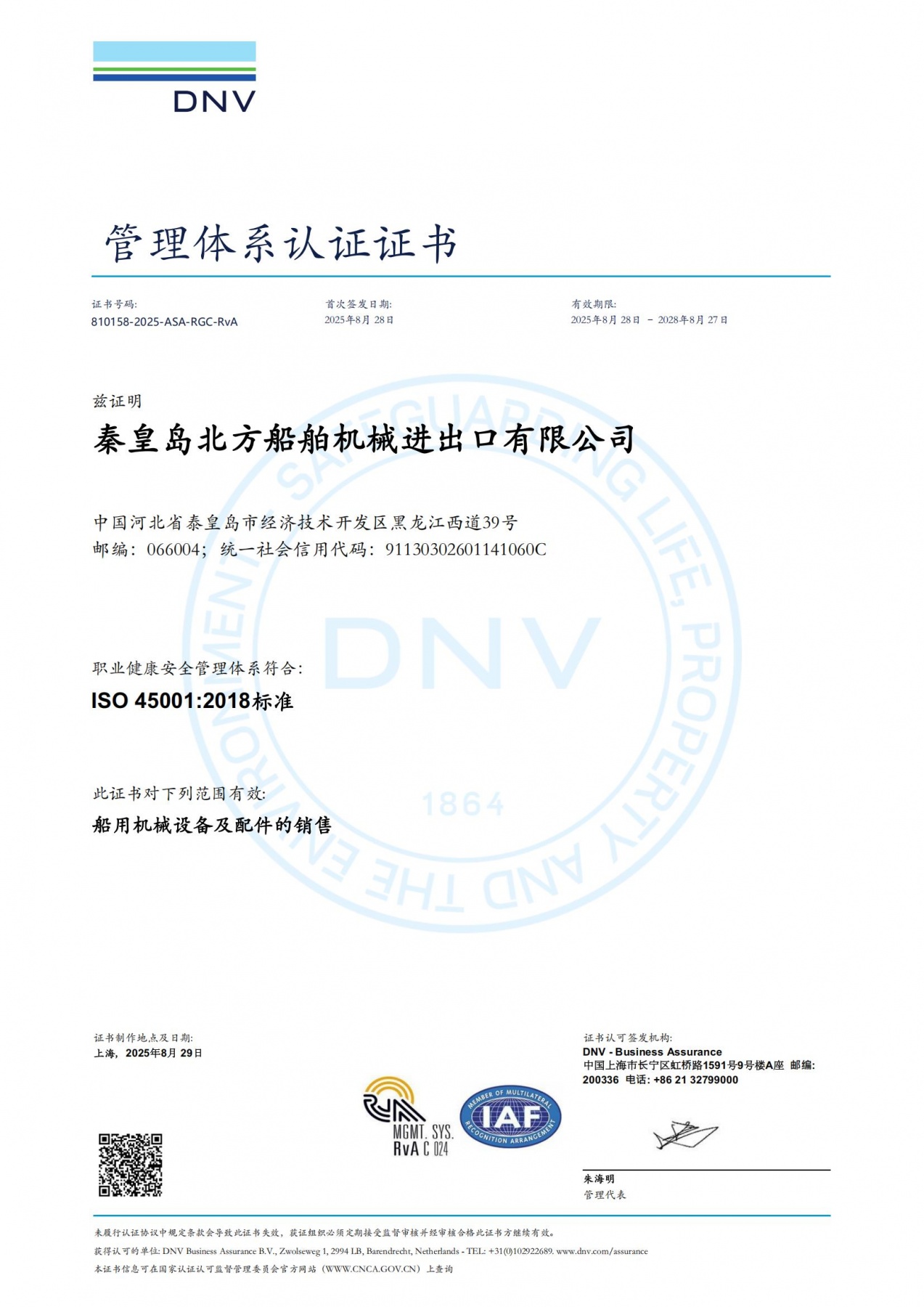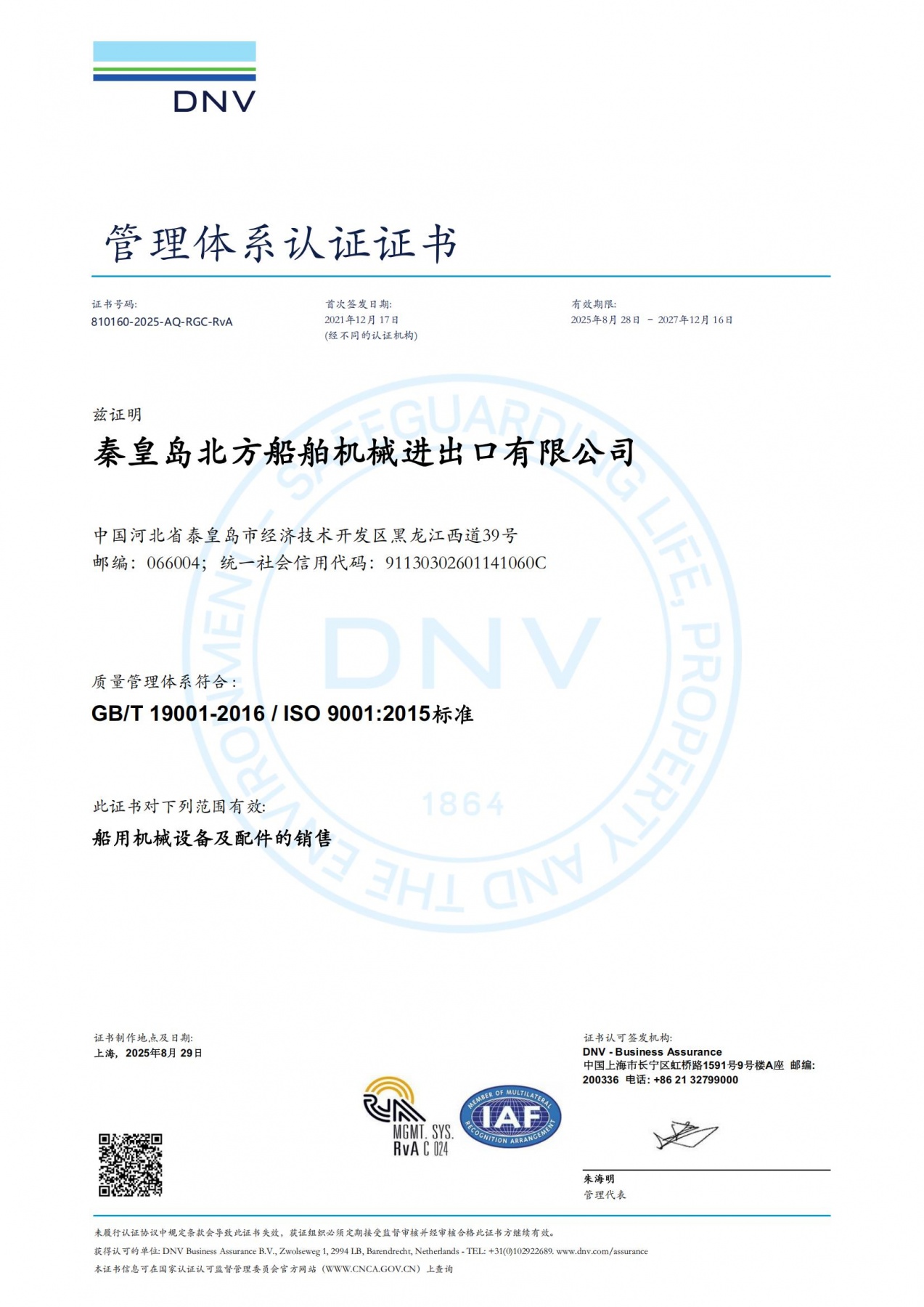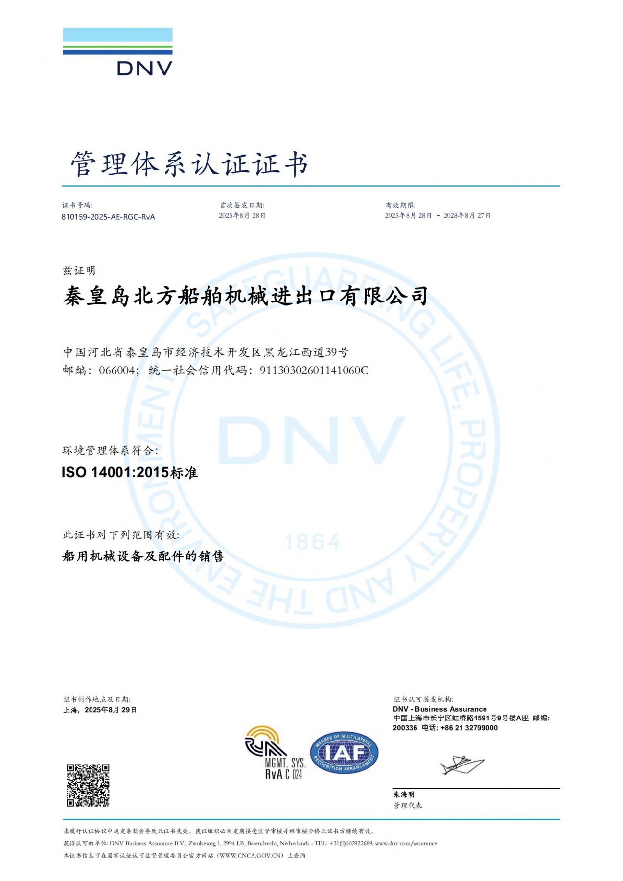 DNV管理體系認(rèn)證證書