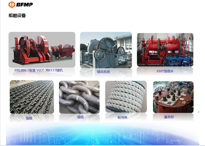 公司為客戶提供各種錨纜機(jī)、拖纜機(jī)、吊機(jī)、舷梯、開艙機(jī)、錨、錨鏈及船舶內(nèi)外舾裝。