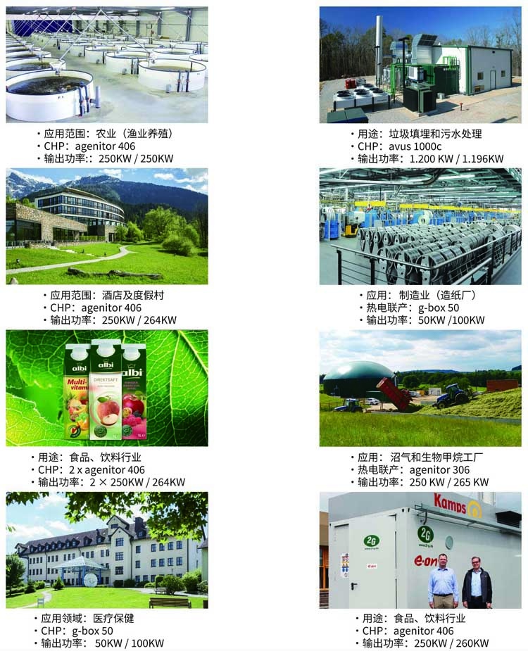 農(nóng)業(yè)、機(jī)場(chǎng)、啤酒廠、食品工業(yè)、溫室、雜貨店、醫(yī)院和護(hù)理設(shè)施、垃圾填埋場(chǎng)、工業(yè)與制造業(yè)、制藥設(shè)施、酒店及度假村、大學(xué)、廢水處理廠、微電網(wǎng)熱電聯(lián)產(chǎn)、可再生天然氣設(shè)施等。