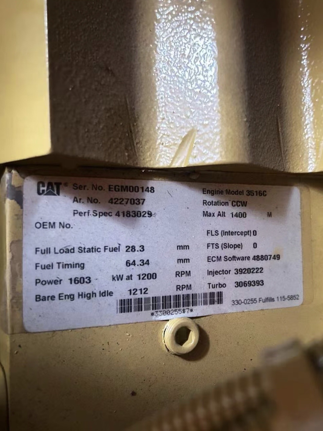 發(fā)動(dòng)機(jī)編號(hào)EGM00145/146/147/148/149